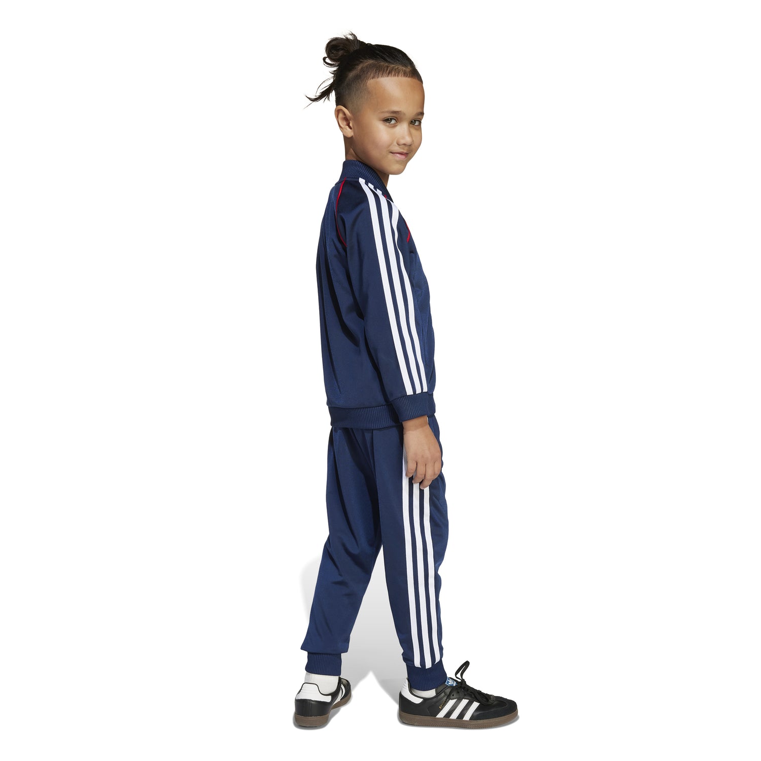 Some pieces never go out of style. This kids' adidas track suit reimagines a wardrobe staple for a new generation. The embroidered Trefoil and 3-Stripes down the sleeves and legs connect them to decades of athletes and game changers. In smooth tricot teams up with a loose, everyday fit, this look is poised to become their go-to for casual hangouts and adventures. When heritage-inspired style is this comfortable, the only thing left is for them to make their own iconic moments.This product is made with 100% recycled materials. By reusing materials that have already been created, we help to reduce waste and our reliance on finite resources and reduce the footprint of the products we make.