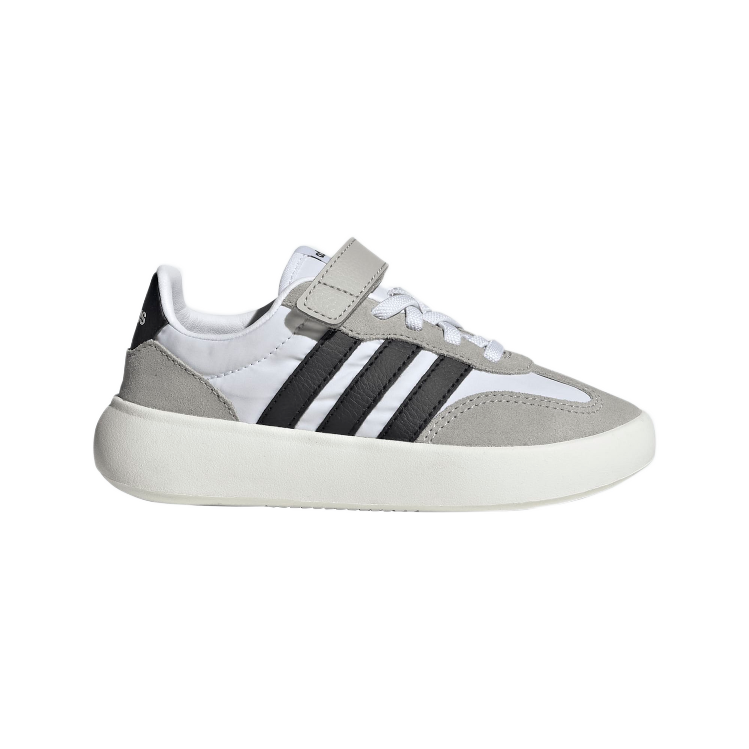 Whether they're off to school or just getting ready for playtime, your little one will love stepping into their adidas Barreda Decode shoes. The smooth nylon upper is accented with suede overlays for a grown-up look that's still fun. Elastic laces and a top strap make these sneakers a breeze to put on and take off.