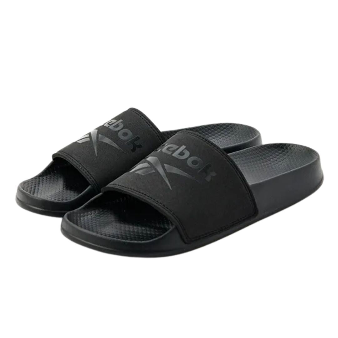 Design: The sandal is a slip-on style, making it easy to put on and take off. It is available in various colors, including black. The Reebok logo is featured prominently on the slide.