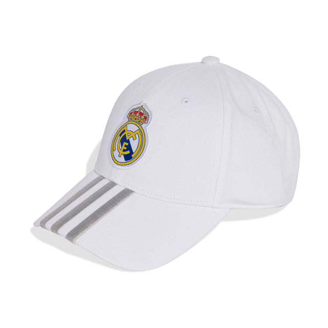 Express your Real Madrid pride from the shade of this classic adidas baseball cap. Made of soft cotton twill and boasting a curved brim, it's an essential for match day and beyond. The adjustable strap provides a custom fit. That woven team crest on the front leaves no doubt where your football loyalties lie.