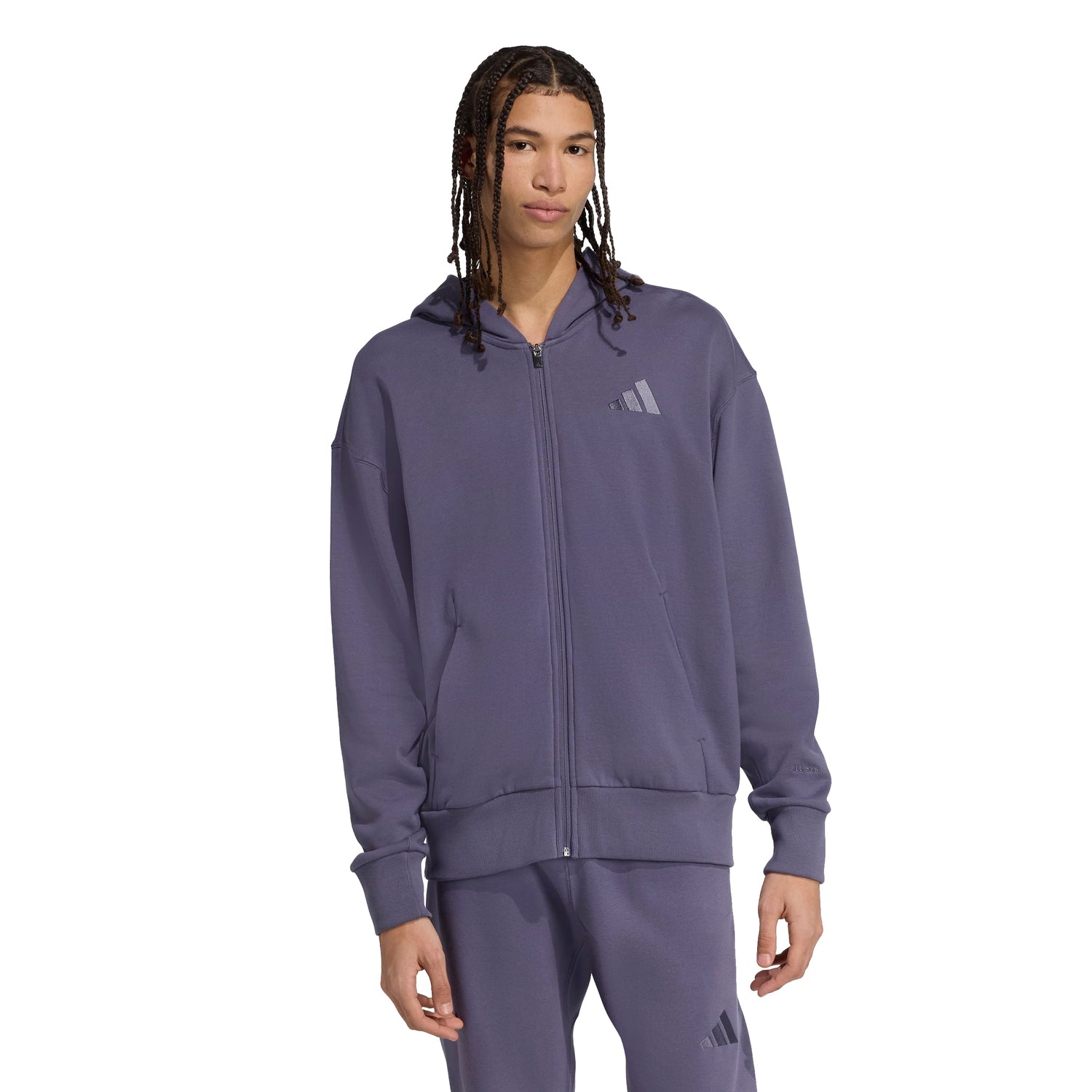 This adidas zip-up hoodie is your go-to for casual comfort and easy style. Made from cosy French terry, it has a soft feel that's perfect for kicking back and relaxing. The classic design features ribbed cuffs and a drawstring hood but flashes a tonal embroidered 3 Bar logo for a modern touch.