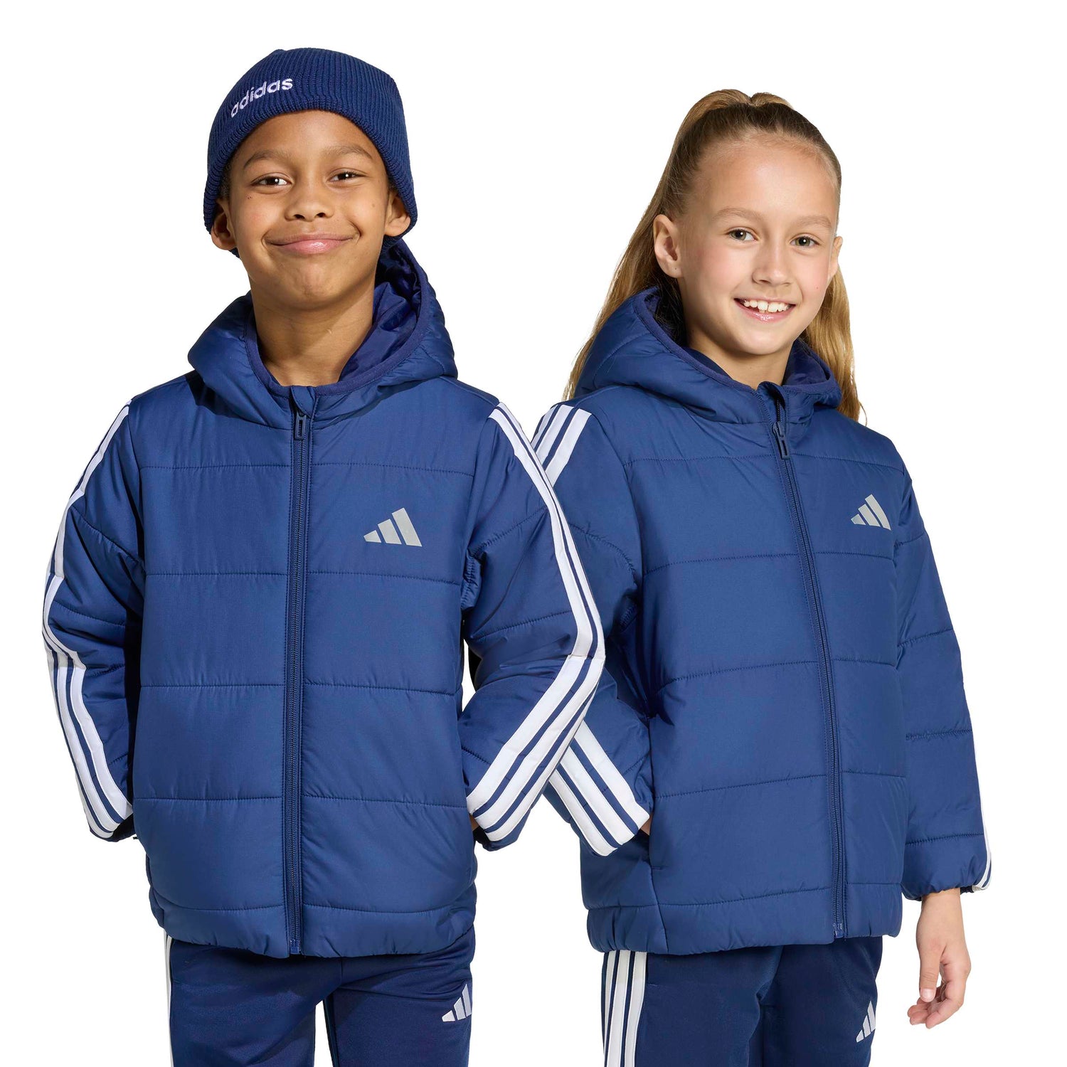 Keep them cosy on cold days in this kids' adidas jacket. With a sporty look and reflective details, it's made to move. Light yet warm, it seals in heat with a full zip and stand-up collar. CLIMAWARM traps heat and releases sweat for a warm, dry and focused performance.