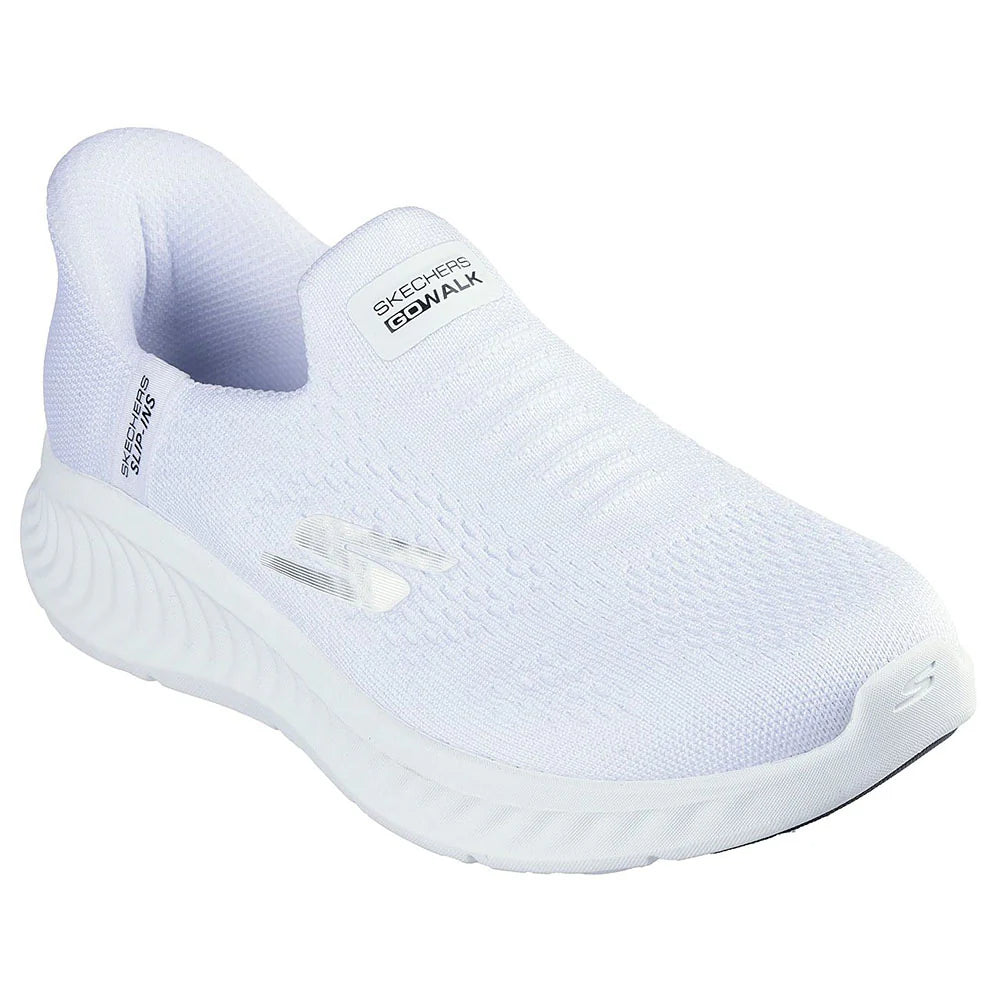 Step into comfort and ease with Skechers Slip-ins: GOwalk Now - Anahi, designed for active individuals. Featuring a breathable Stretch Knit upper, a cushioned Air-Cooled Goga Mat insole, a supportive heel pillow, and a soft stride for effortless daily walks.