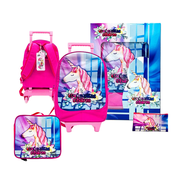 Unicorn Set Of 3 (16" Trolley + Snack Bag + Flat Pencil Case)