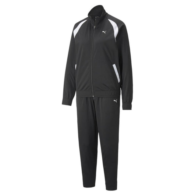 Rock the co-ord look in this sporty tracksuit combo. Stylish slim-fit bottoms pair with a classic zip-up track top for an athletic feel, finished with contrast highlights at the pockets and sleeves, which are echoed in the PUMA Cat Logo branding. Made from 100% recycled materials as part of our push to lower our environmental impact.
