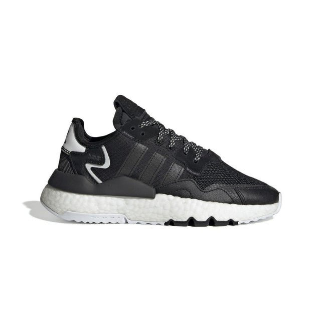 Inspired by a 1980 trainer, these juniors' shoes shine bright with retro style and reflective details. For a fun twist, they show off a 3D Morse code pattern on the tongue label. An updated Boost midsole returns energy with every stride.