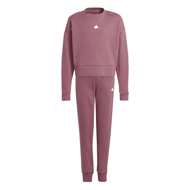 You've got big plans. Get your day started in style with this juniors' adidas track suit. The sweatshirt and pants are made of a soft cotton blend to keep you feeling good all day long. The sweatshirt has a loose fit to let you move around freely, while the raised Badge of Sport on the chest adds a cool touch.A minimum of 70% of this product is a blend of recycled and renewable materials.