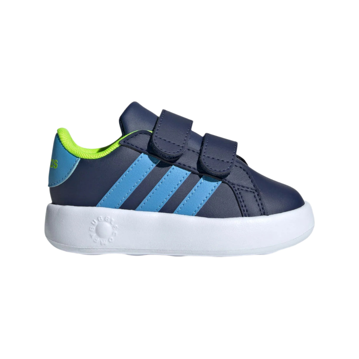 If your infant could talk, they'd tell you how much they love these adidas Grand Court shoes! Hook-and-loop straps make slipping these on a cinch, while the bubbly EVA sole keeps little growing feet happy. Whether they're crawling, cruising or taking their first steps, the fun colours and classic 3-Stripes will inspire a lifetime of play.