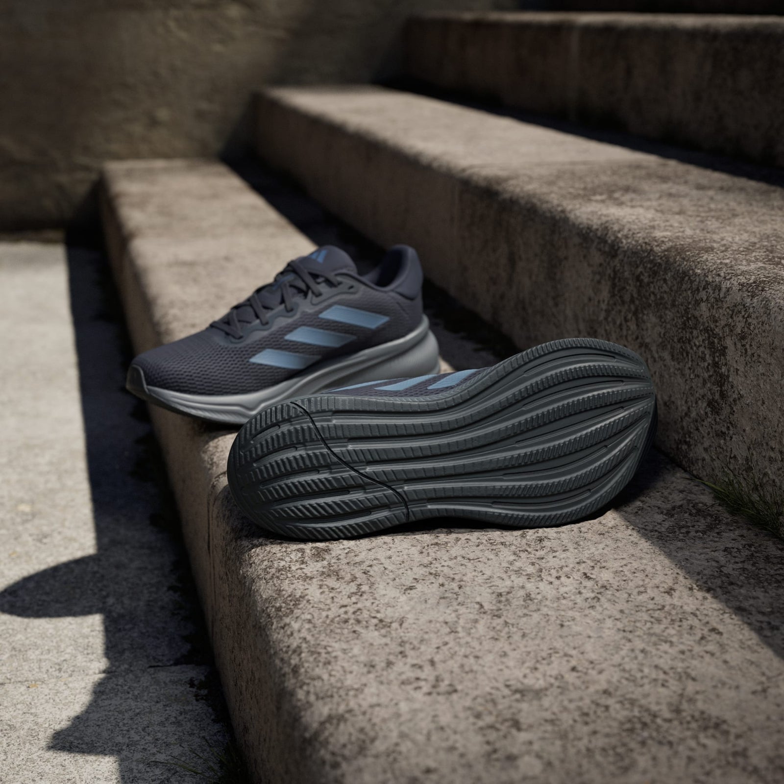 Whether you're ticking off some easy laps or pushing for a personal record, these adidas running shoes support you as you run toward your goals. The full-length EVA midsole offers cushy comfort while a grippy outsole keeps your pace steady. The versatile style transitions easily to your post-run activities.